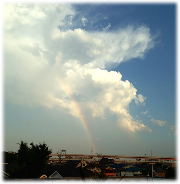 真夏にベランダから見えた虹。