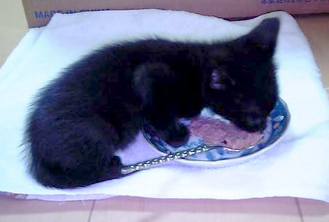 ある夜、自宅前の道路から子猫の鳴き声が聞こえた。